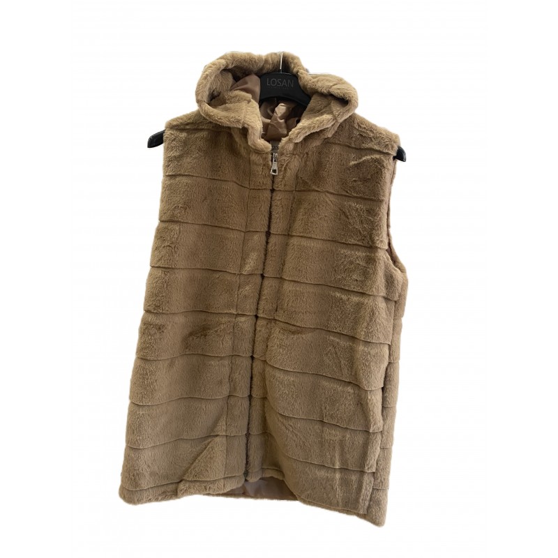 CHALECO PELO LARGO C/CAPUCHA